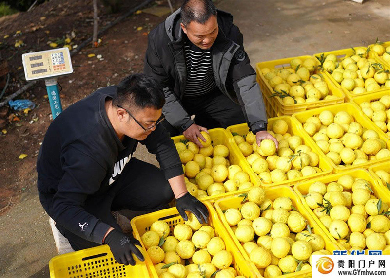 1月3日,在贵州省黔东南苗族侗族自治州榕江县忠诚镇干烈村黄金柚种植基地,果农在分拣黄金柚。