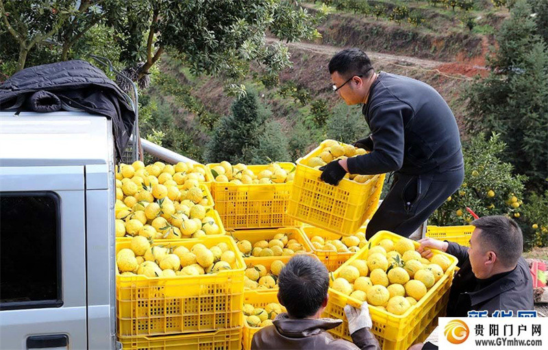 当下正值黄金柚成熟季,贵州省黔东南苗族侗族自治州榕江县农民种植的黄金柚迎来丰收,果农们趁着晴好天气进行采收,供应市场。