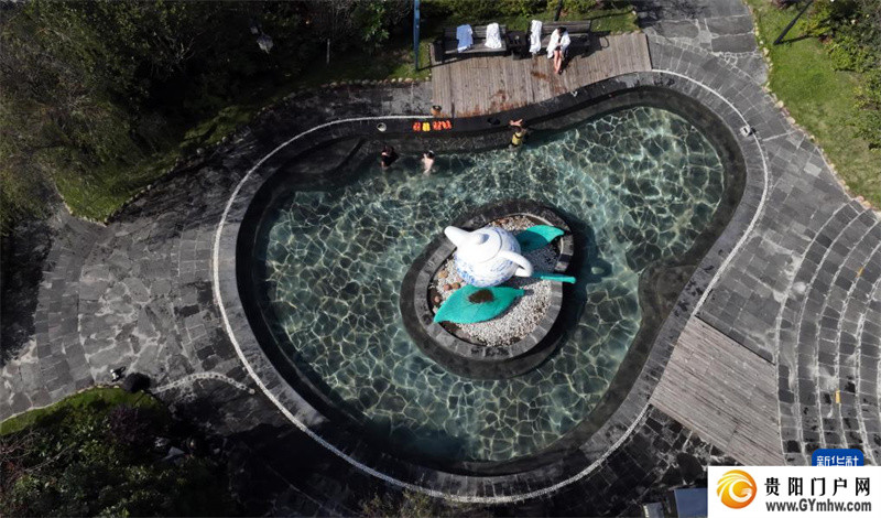 10月31日,游客在贵州省毕节市百里杜鹃管理区彝山花谷泡温泉。新华社发(范晖 摄)