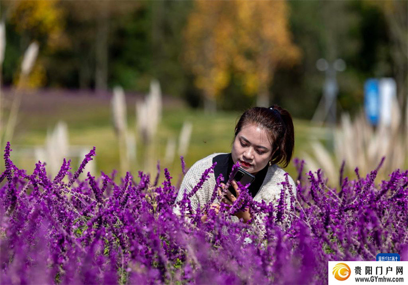 10月31日,游客在贵州省毕节市百里杜鹃管理区彝山花谷景区赏花拍照。新华社发(范晖 摄)